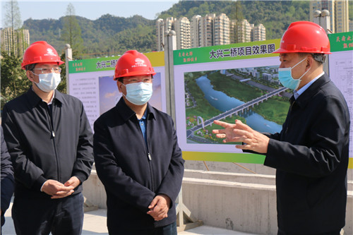 3月19日,副省長楊洪波一行赴雅安市調(diào)研重點(diǎn)項目推進(jìn)工作,調(diào)研大興二橋項目建設(shè)情況,市委書記蘭開馳,副市長張橋陪同調(diào)研。