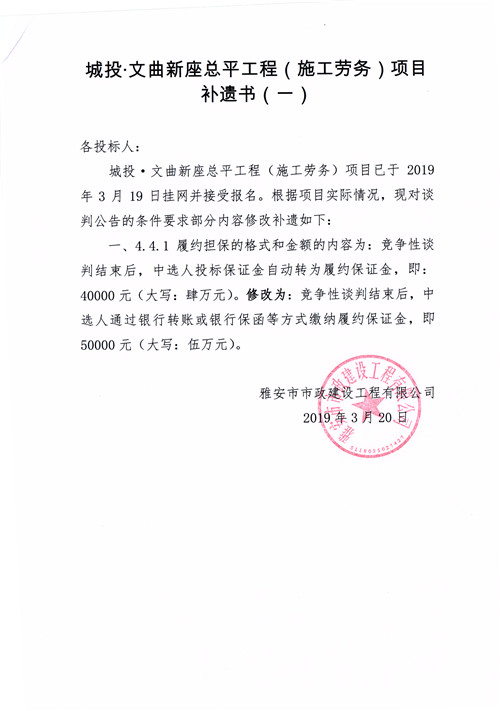 城投·文曲新座總平工程(施工勞務(wù))競爭性談判公告補(bǔ)遺一