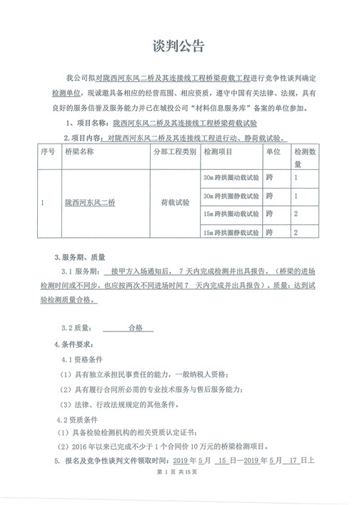 隴西河東風二橋及其連接線工程橋梁荷載工程競爭性談判公告