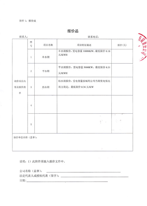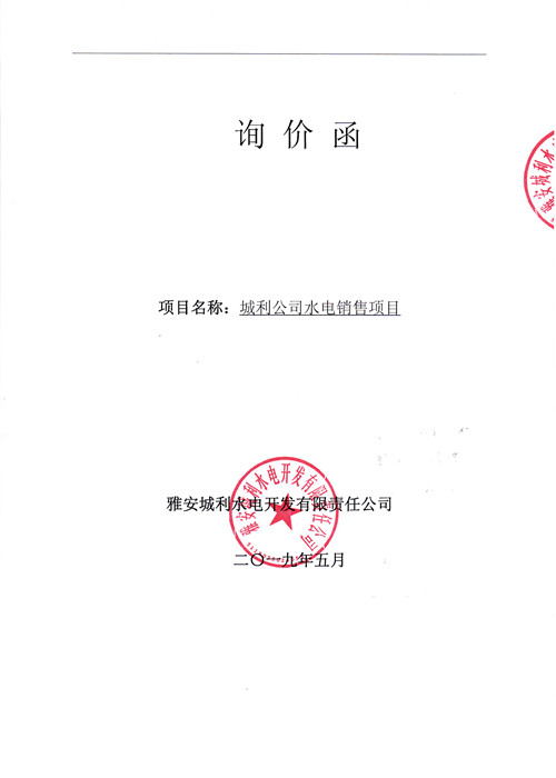 城利公司水電銷售項目詢價函