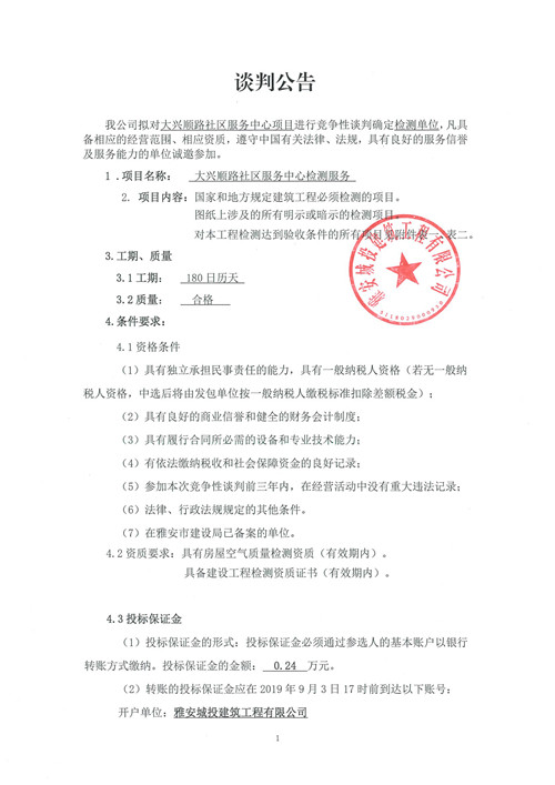 大興順路社區(qū)服務(wù)中心檢測(cè)服務(wù)競(jìng)爭(zhēng)性談判公告