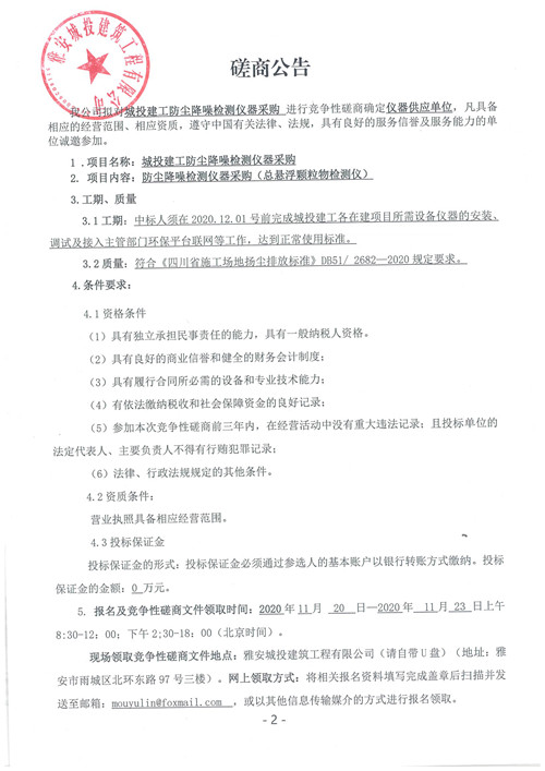 城投建工防塵降噪檢測(cè)儀器采購(gòu)競(jìng)爭(zhēng)性談判公告