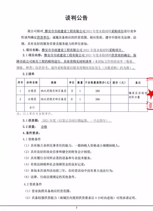 雅安市市政建設(shè)工程有限公司2021年度水穩(wěn)材料采購(gòu)項(xiàng)目