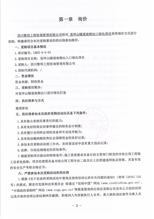 黎明咨詢公司蒼坪山隧道南側(cè)出口綠化項目詢價函