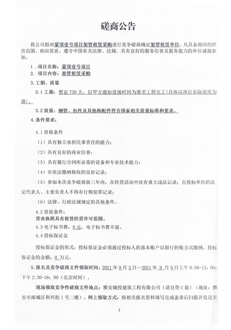 蒙頂壹號(hào)項(xiàng)目架管租賃采購(gòu)競(jìng)爭(zhēng)磋商公告