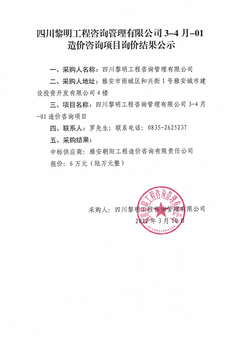 四川黎明工程咨詢管理有限公司3-4月-01造價(jià)咨詢項(xiàng)目詢價(jià)結(jié)果公示