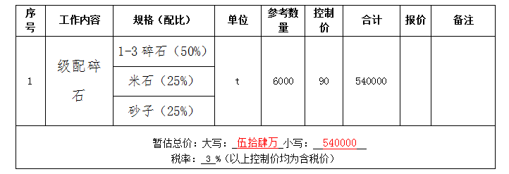 2.1項目內(nèi)容:雅安文教新城市政道路恢復(fù)重建項目(一標(biāo)段)級配碎石采購供貨商的確定,保障市政公司相關(guān)工程的順利進行,具體貨物見材料清單(本招標(biāo)文件所附清單(數(shù)量、規(guī)格、種類)僅供參考,最終采購數(shù)量實際發(fā)生(分散采購)的為準(zhǔn))。