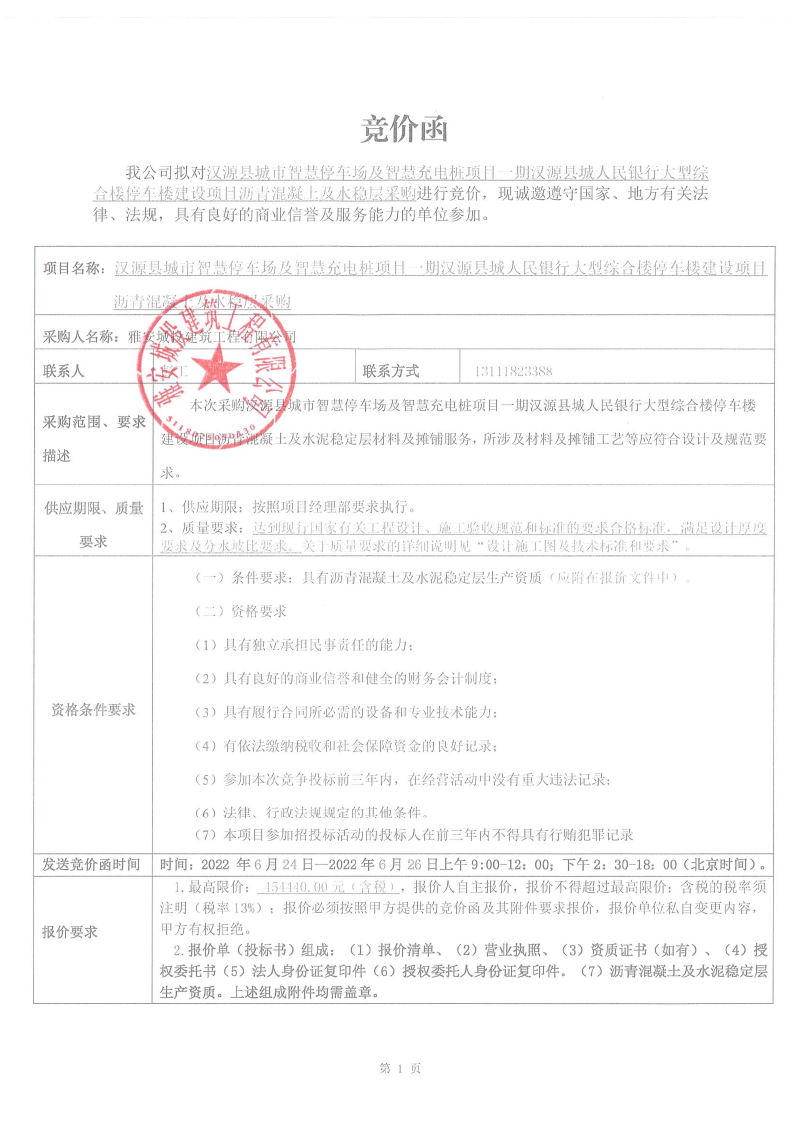 漢源縣城市智慧停車場及智慧充電樁項(xiàng)目一期漢源縣城人民銀行大型綜合樓停車樓建設(shè)項(xiàng)目瀝青混凝土、水穩(wěn)層采購競價(jià)公告