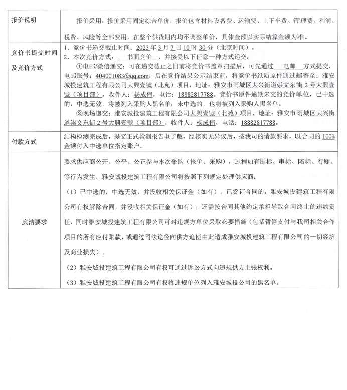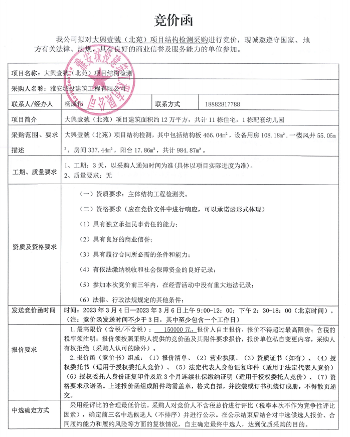 大興壹號(北苑)項目結構檢測競價采購競價公告