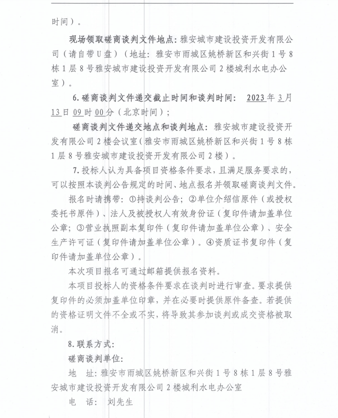 雅安城利水電公司2022年度水輪發(fā)電機(jī)組檢修工程(第三次)磋商談判公告