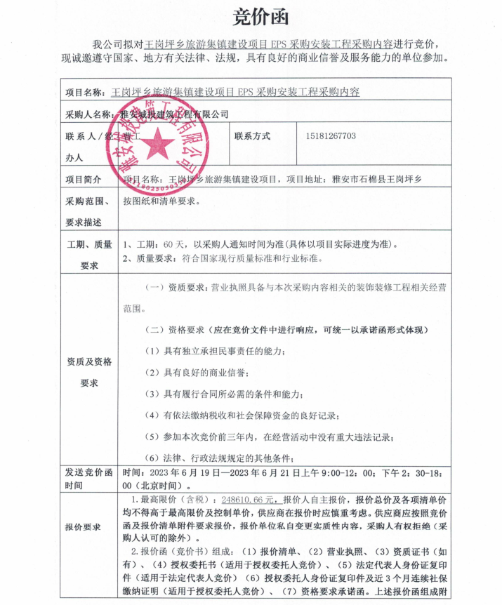 王崗坪鄉(xiāng)旅游集鎮(zhèn)建設(shè)項目EPS采購安裝工程采購內(nèi)容競價公告