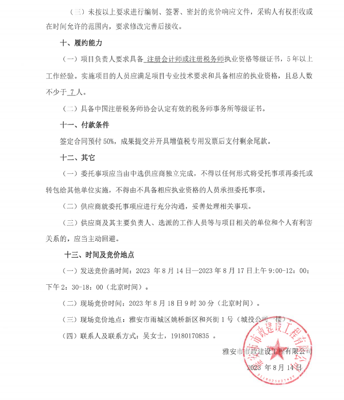 市政公司增值稅清理專項(xiàng)服務(wù)采購(gòu)需求書