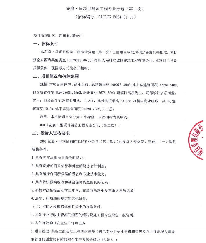 花襄·里項(xiàng)目消防工程專(zhuān)業(yè)分包(第二次)公告