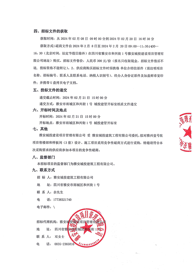 雅州壹號項(xiàng)目售樓部和樣板間(3套)設(shè)計(jì)、施工項(xiàng)目招標(biāo)公告