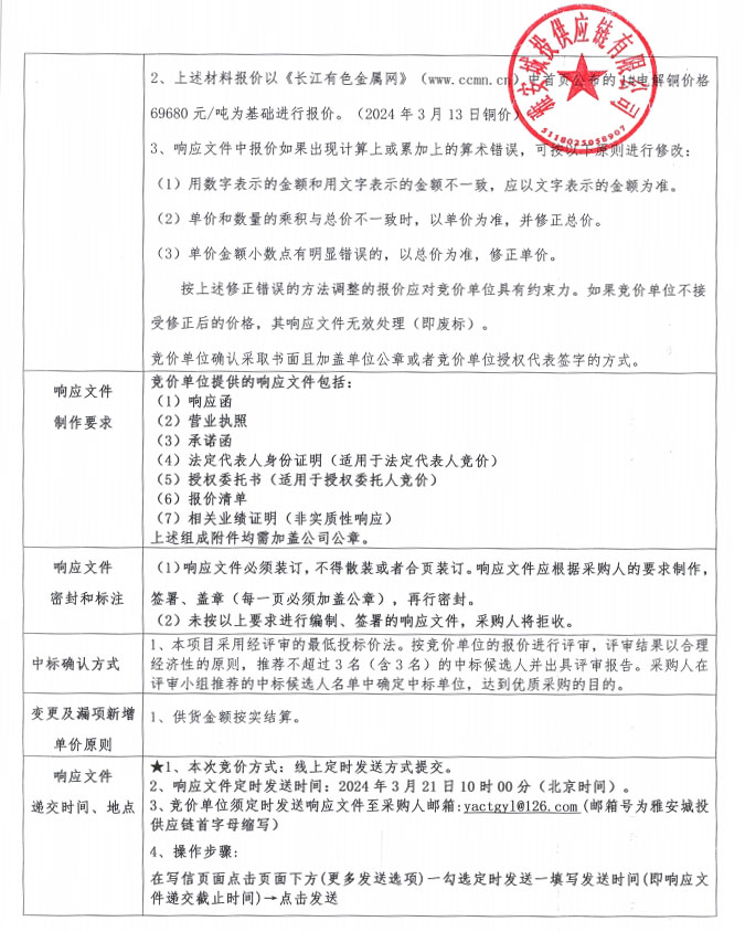 雅安城投供應(yīng)鏈有限公司電線(xiàn)電纜采購(gòu)競(jìng)價(jià)公告