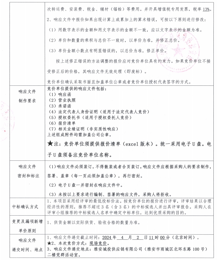 響應文件格式-蒙頂壹號抗震支架采購