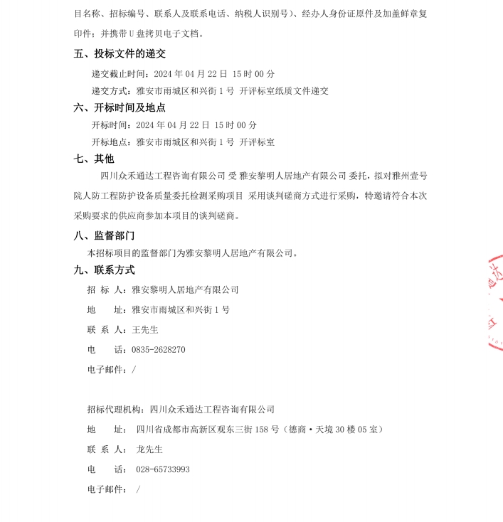 雅州壹號院人防工程防護設(shè)備質(zhì)量委托檢測采購項目公告