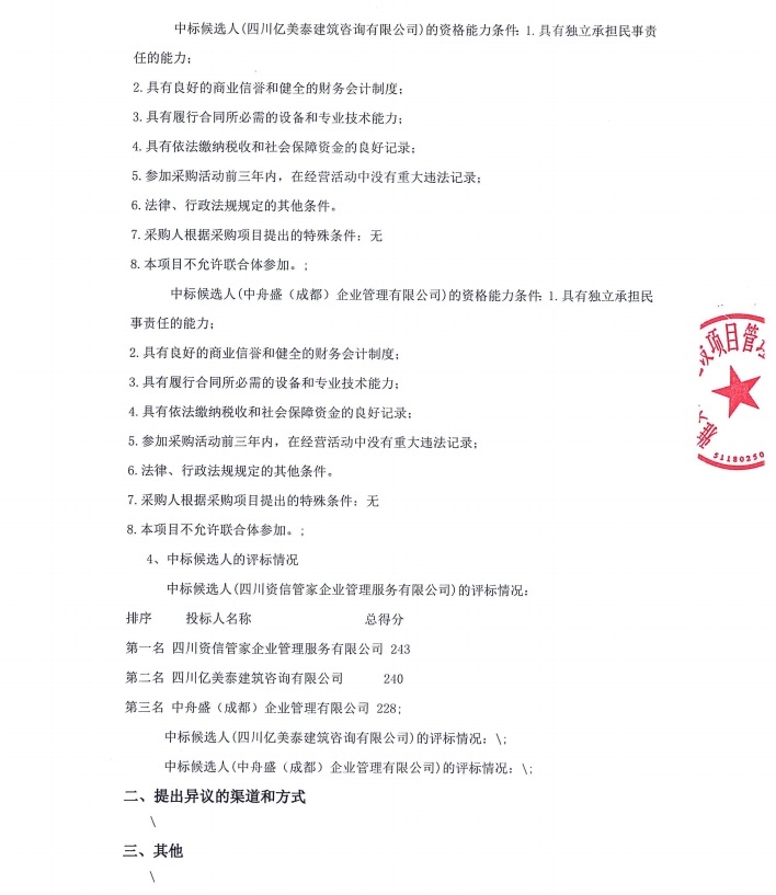 雅安市雅城建筑工程有限公司建筑工程施工總承包貳級資質(zhì)新辦咨詢服務(wù)采購項目中標(biāo)候選人公示