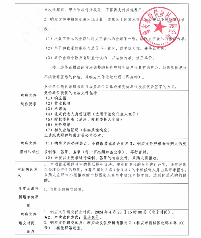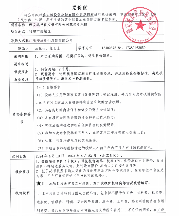 雅安城投供應(yīng)鏈有限公司花崗石采購競價(jià)公告