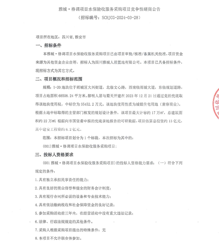 雅城·格調(diào)項目水保驗(yàn)收服務(wù)采購項目競爭性磋商公告