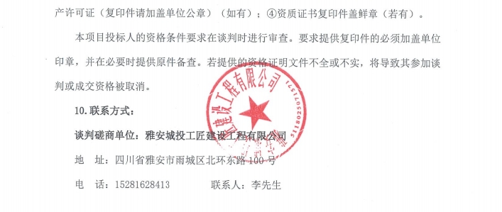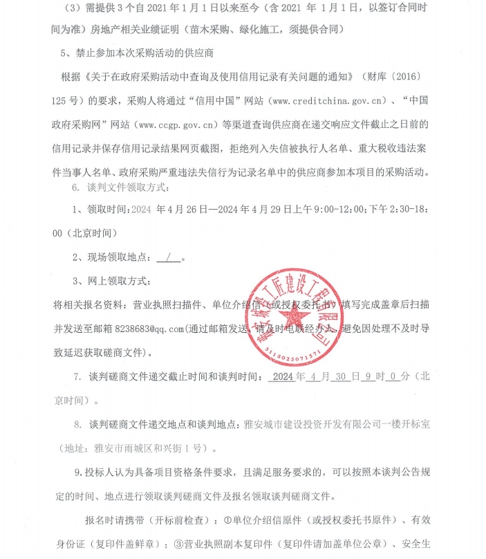 雅州壹號院總坪項目(樣板段)綠化材料采購談判磋商公告
