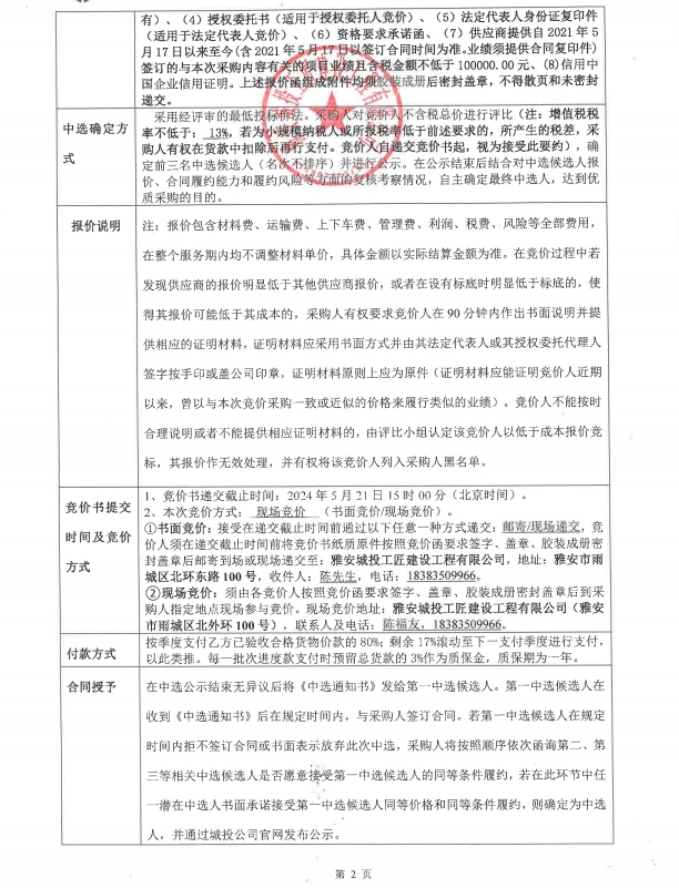雅安市大興生態(tài)旅游建設(shè)項目大興二橋彩繪詢價清單