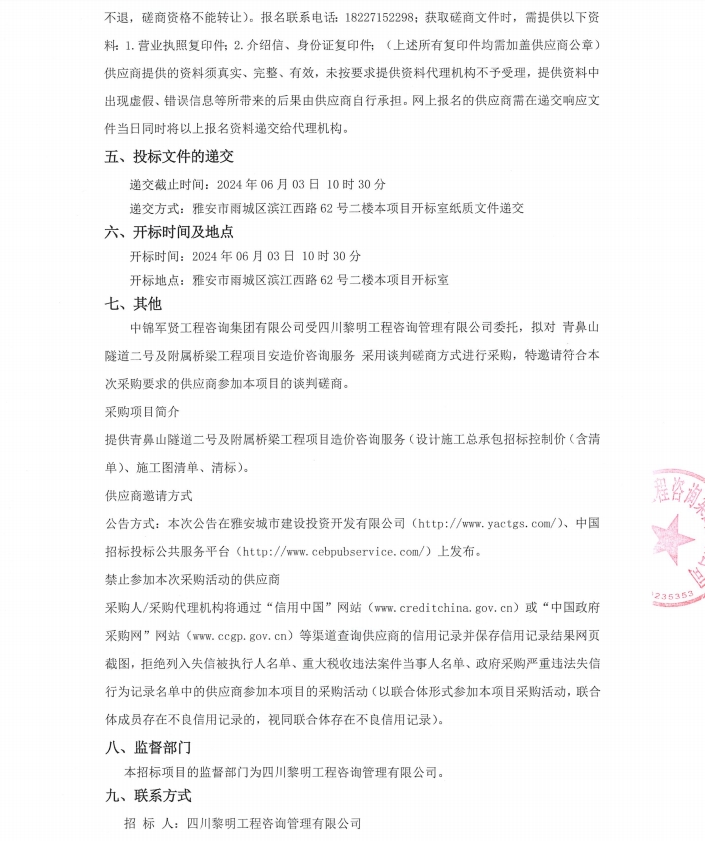 青鼻山隧道二號及附屬橋梁工程項(xiàng)目造價咨詢服務(wù)競爭性磋商公告