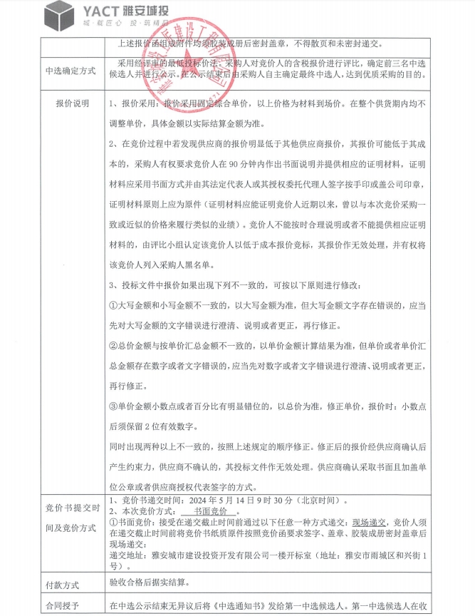 雅州壹號院總坪項(xiàng)目(樣板段)水電材料采購競價(jià)公告