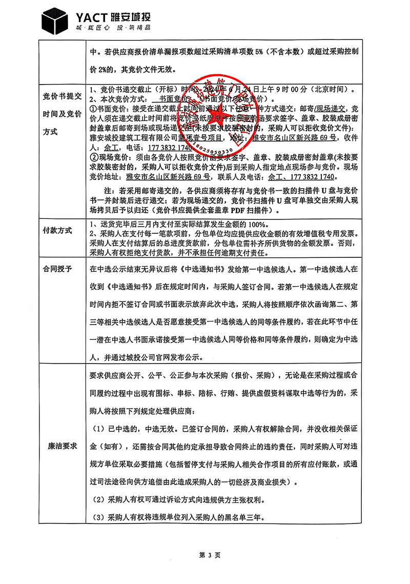 蒙頂壹號項(xiàng)目穿孔水泥板裝修材料采購(第二次)競價(jià)函