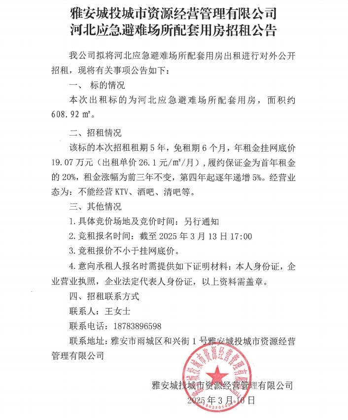 河北應(yīng)急避難場(chǎng)所配套用房招租公告