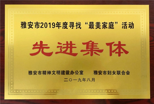 9月27日,城投公司雅安市2019年尋找“最美家庭”活動(dòng)先進(jìn)集體稱號(hào)。